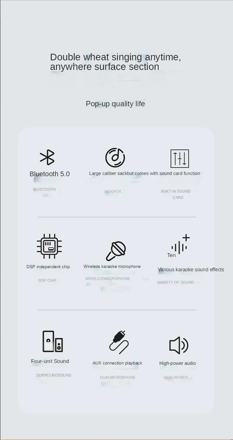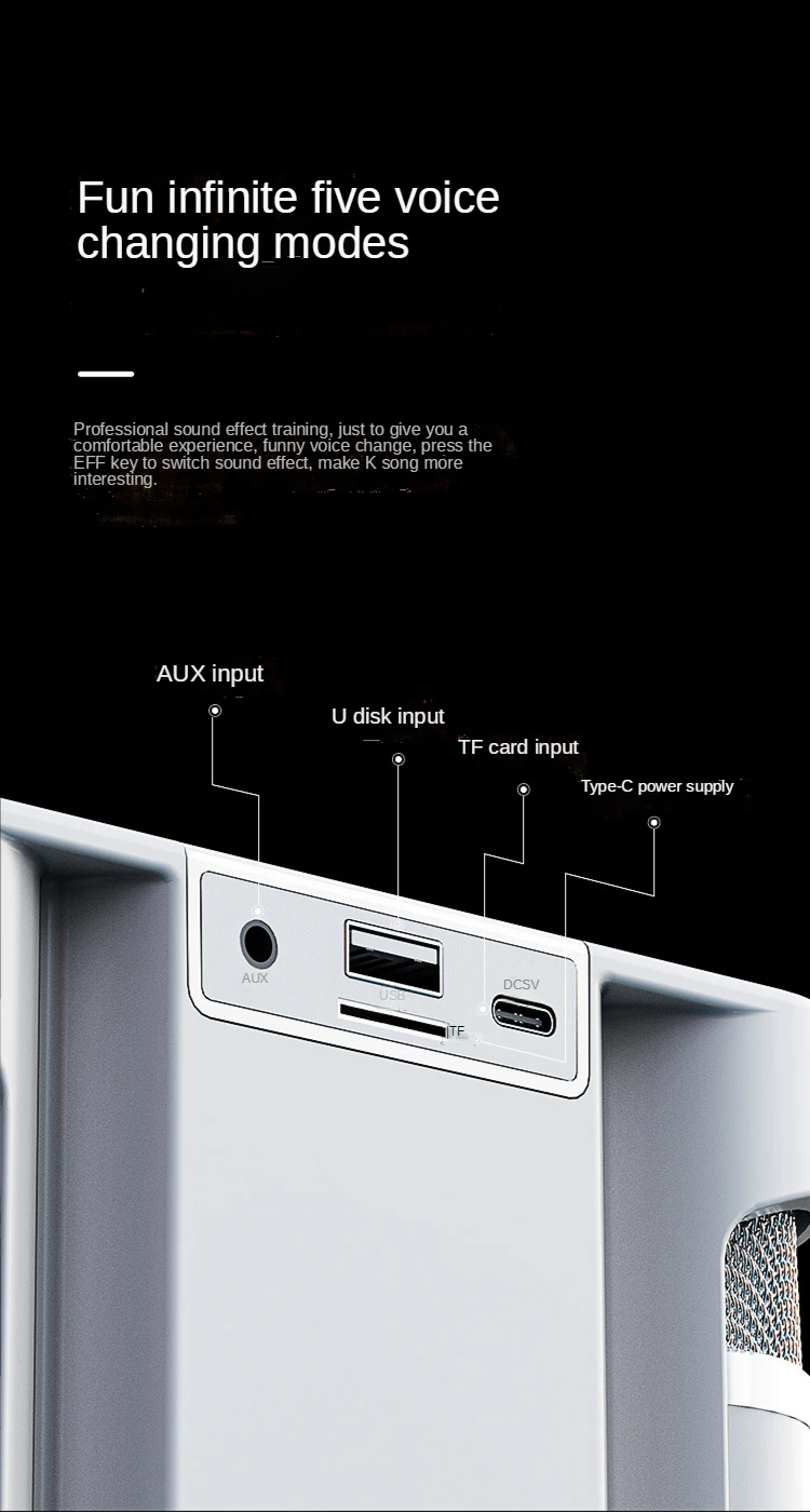 يدعم مكبر الصوت الإدخال اللاسلكي ومحرك أقراص USB وبطاقة MicroSD (TF) ومدخل AUX. هناك دائمًا طريقة لبدء تشغيل الموسيقى.