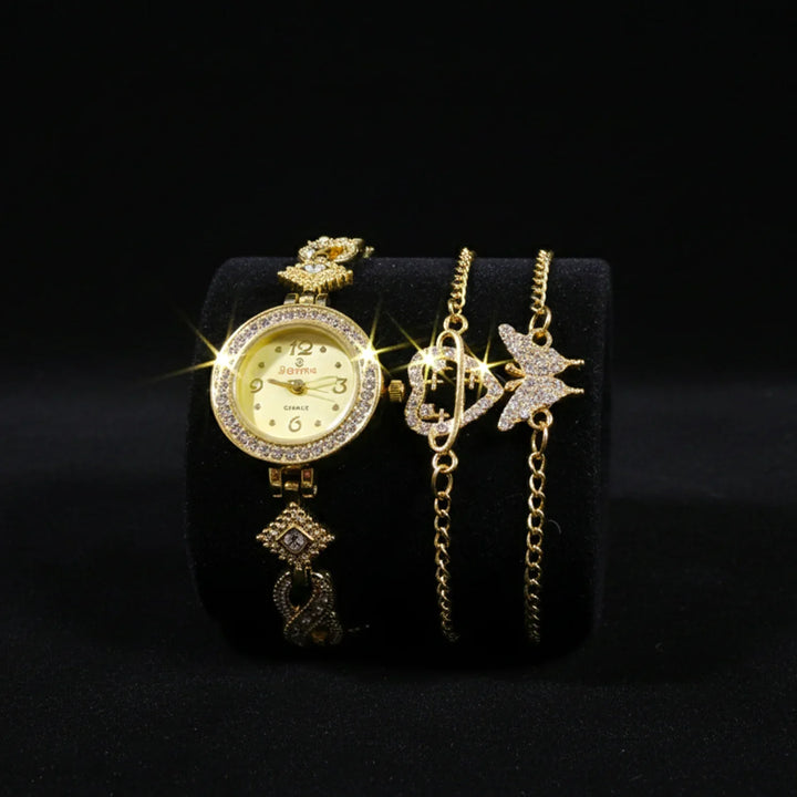 Women’s Crystal Studded Gold Watch with 2 Matching Bracelets - WB25