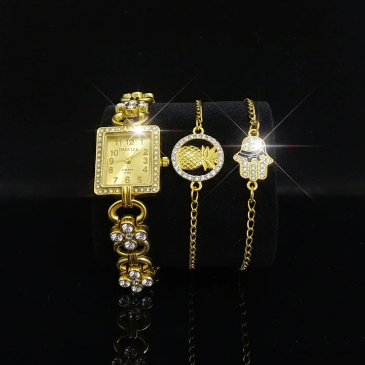 Women’s Crystal Studded Gold Watch with 2 Matching Bracelets - WB35
