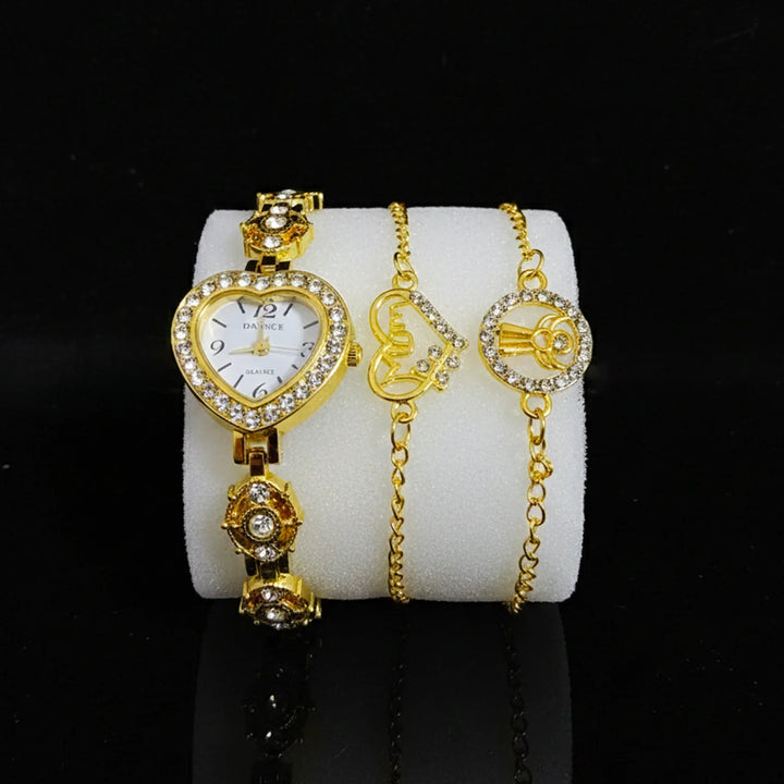 Women’s Crystal Studded Gold Watch with 2 Matching Bracelets - WB36