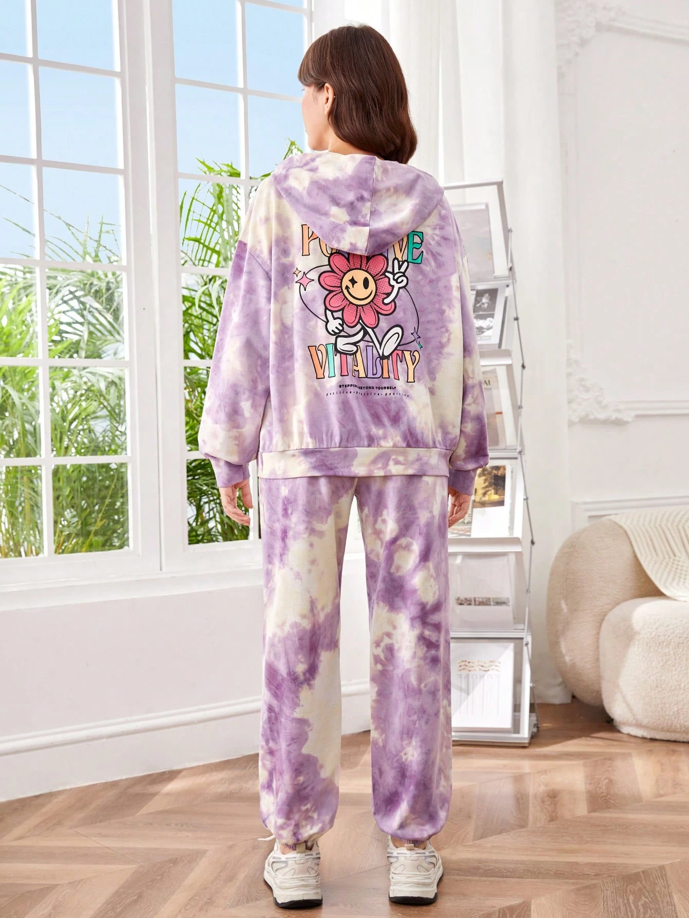 طقم هودي وبنطال رياضي شتوي برسومات كرتونية للنساء - JR217