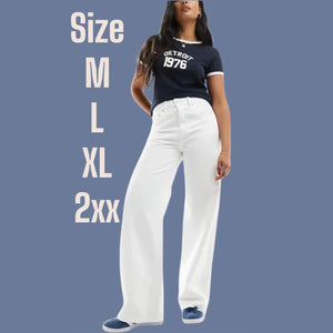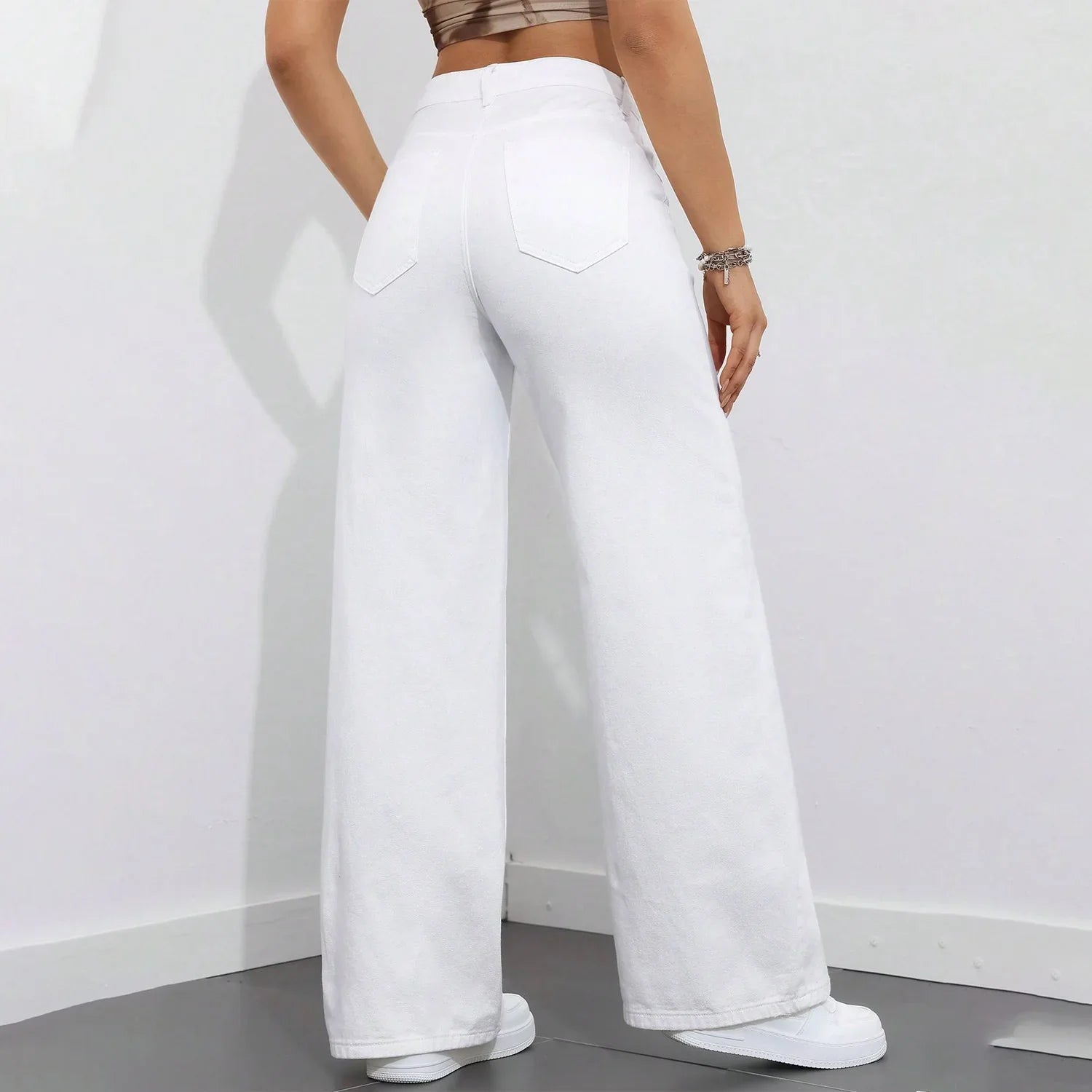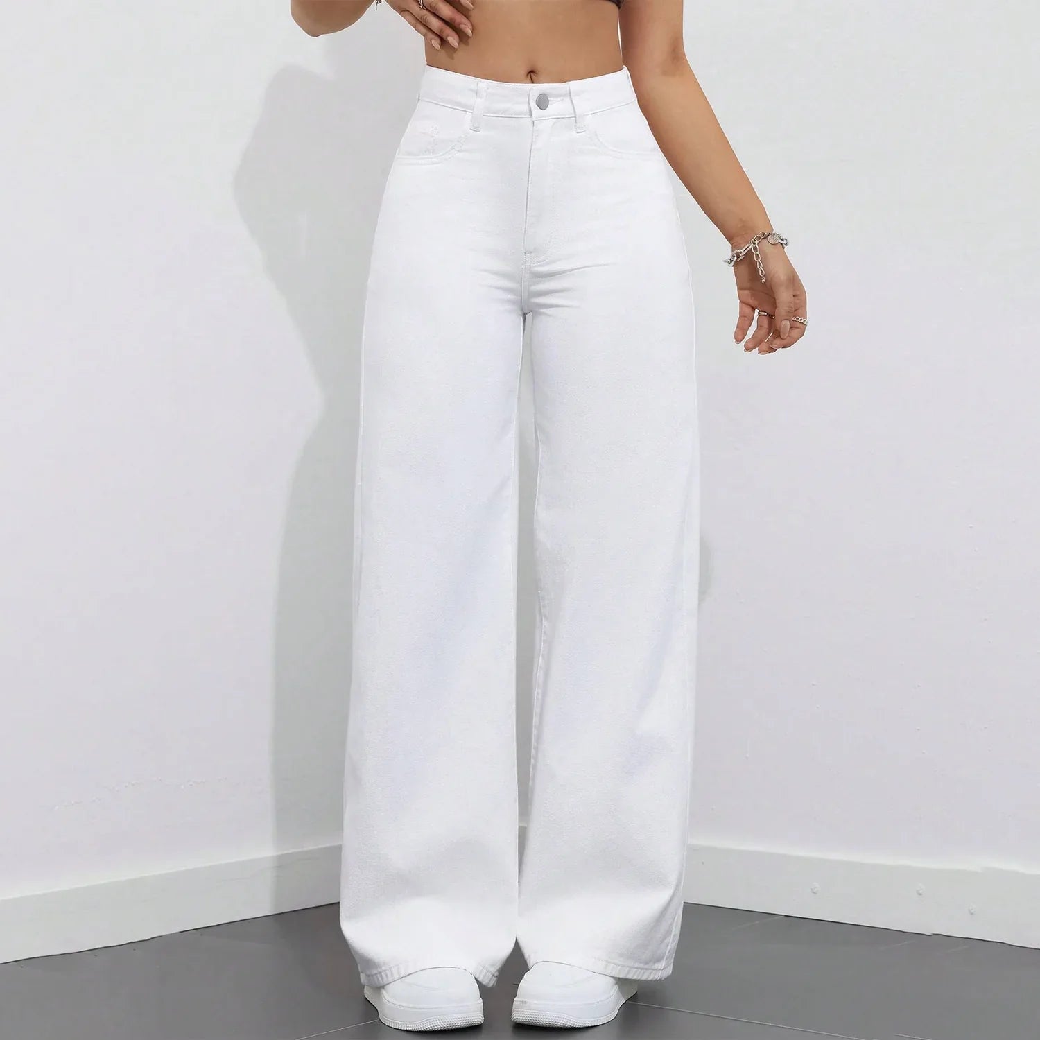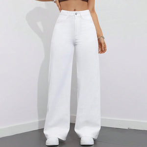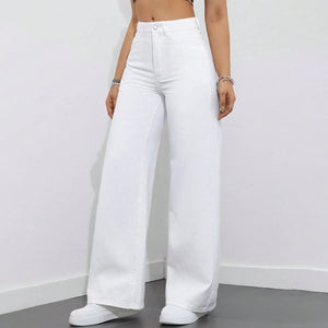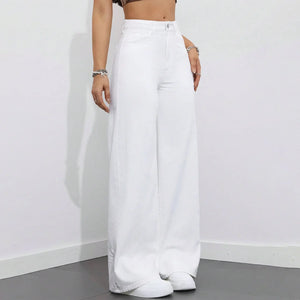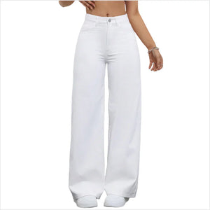 بنطلون جينز أبيض عريض الساقين أنيق كاجوال نسائي عريض الساقين أبيض - 8811#