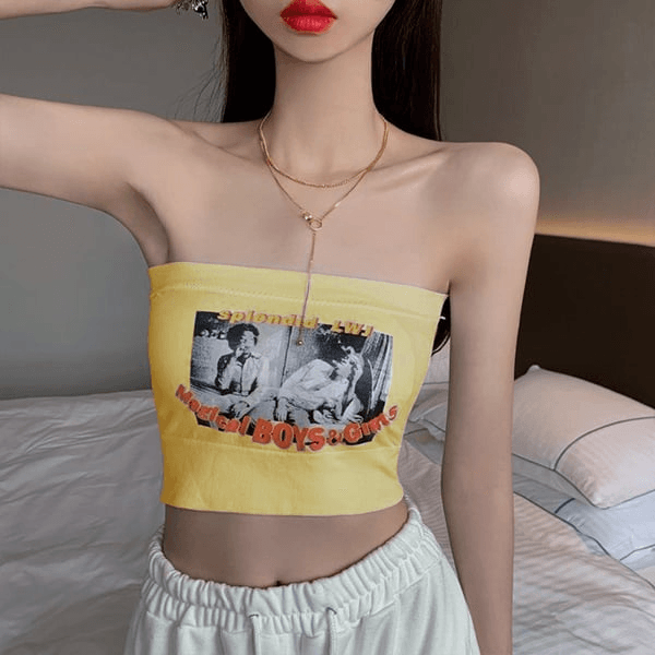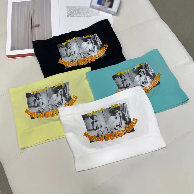 بلوزة نسائية قصيرة بدون حمالات رفيعة مع بطانة صدر داخلية وخارجية قابلة للارتداء بطباعة رائعة متعددة الاستخدامات