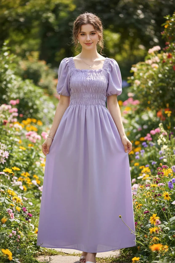 فستان نسائي عصري بأكمام منفوشة على شكل حرف A