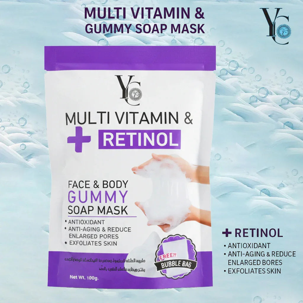 ماسك الصابون الصمغ الصمغي للوجه والجسم بفيتامينات وريتينول متعدد الفيتامينات من واي سي - 100غم