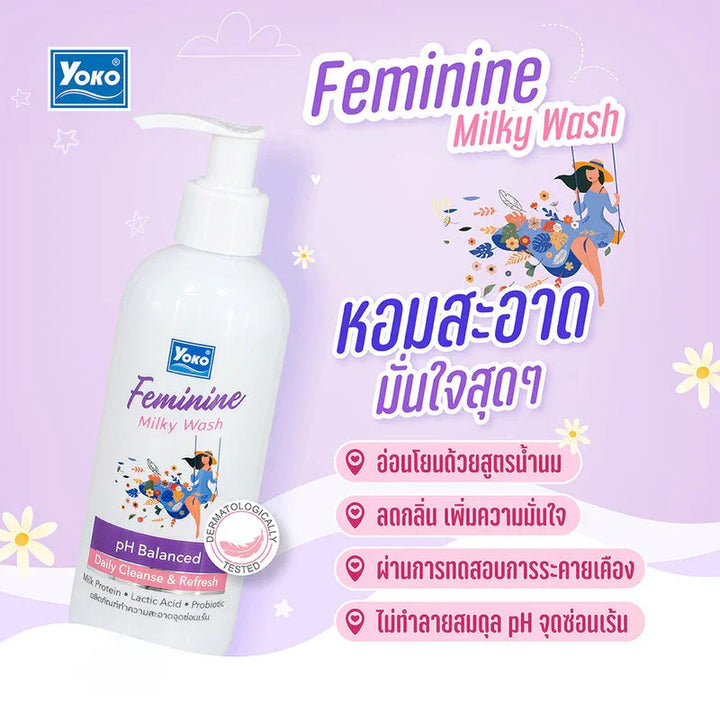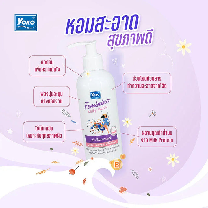 غسول يوكو ميلكي غسول نسائي 240 مل، منتج تنظيف حميمي تم تطويره لتنظيف المنطقة الحميمة بلطف من يوكو بدون صابون قد يسبب تهيجًا. رائحة نظيفة تزيد من الثقة مناسب للاستخدام اليومي
