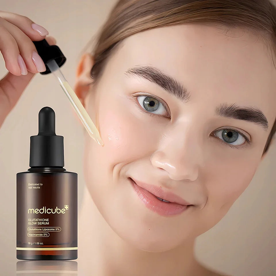 Discover radiant skin with medicube's Glutathione Glow Serum. This high-quality serum is enriched with 50,000 ppm glutathione, a powerful antioxidant that protects the skin from environmental damage and aging. The formula also contains niacinamide, adenosine, collagen, and bifida ferment lysate to brighten the skin, improve its elasticity, and strengthen the skin barrier.