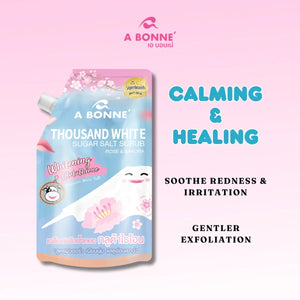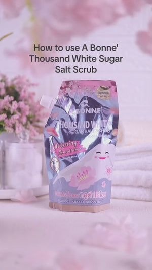 A 2in1 Thousand White Sugar Salt Scrub that gently exfoliates the skin and nourishing skin, leave silky, bright and beautifully healthy skin.