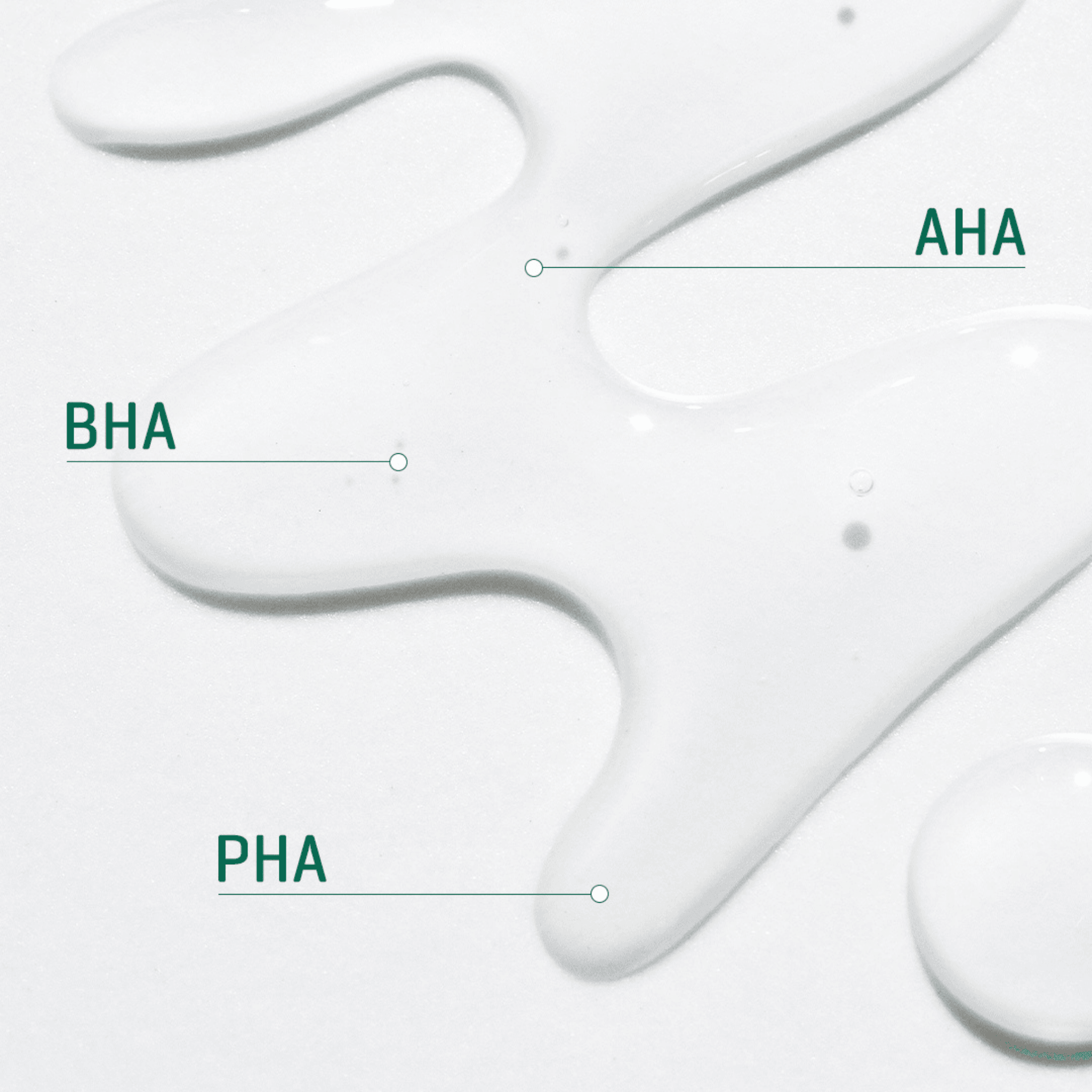 ● AHA removes dead skin cells, BHA removes impurities, and PHA prevents moisture loss.
