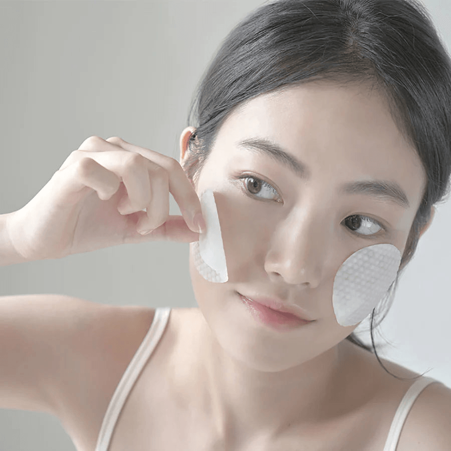 - After cleansing, use the embossing side of the pad to cleanse the face along the skin texture, avoiding the lip and eye areas.