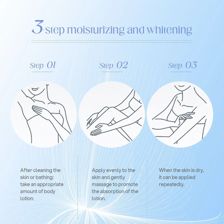 Apply generously to clean, dry skin daily. Massage gently until fully absorbed. Use consistently for a radiant, healthy glow.