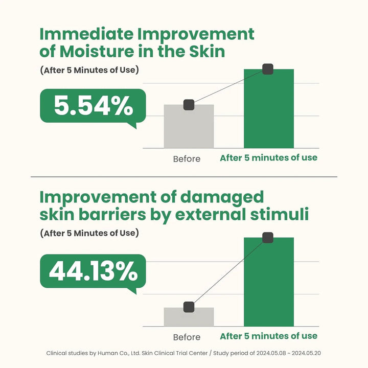 • 44% improvement in damaged skin barrier caused by external irritants within 5 minutes after a single use