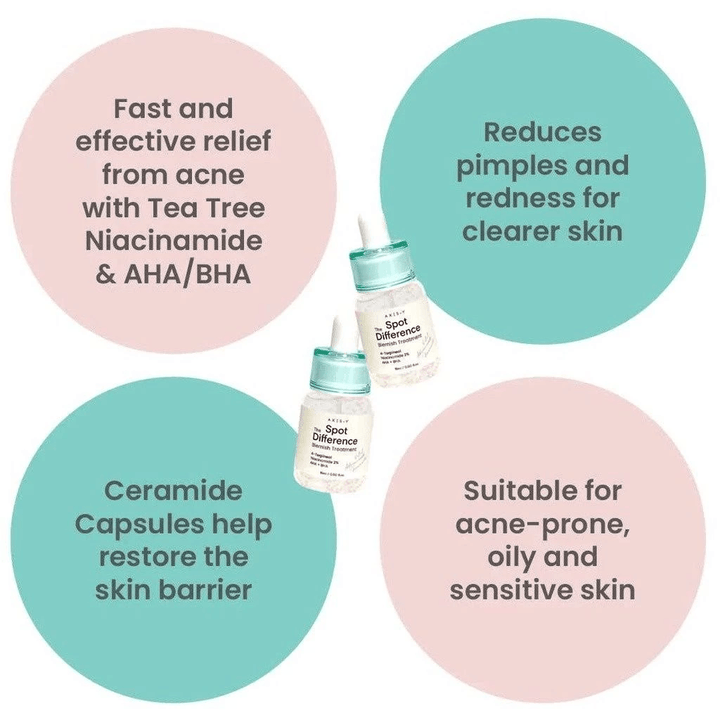 Formulated for acne-prone, oily and sensitive skin, Spot The Difference Blemish Treatment provides effective relief from breakouts and blemishes. This light gel is also infused with hydrating Ceramide capsules to help restore the skin barrier. Daily life stress along with environmental stressors like air pollution, overly humid or dry environments, and more harm our skin’s barrier function. This makes skin problems, especially acne, more common and more difficult to recover from. It is is designed to provide quick relief and noticeable results and will ensure that with every drop, you can truly spot the difference.