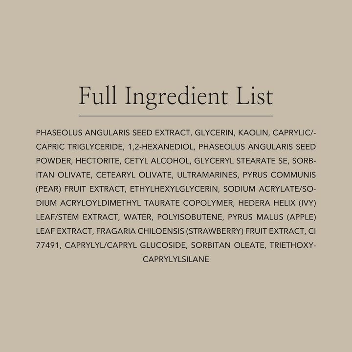 - [Kaolin] Kaolin absorbs sebum, and red bean extract and red bean powder help with exfoliating and clear skin texture.