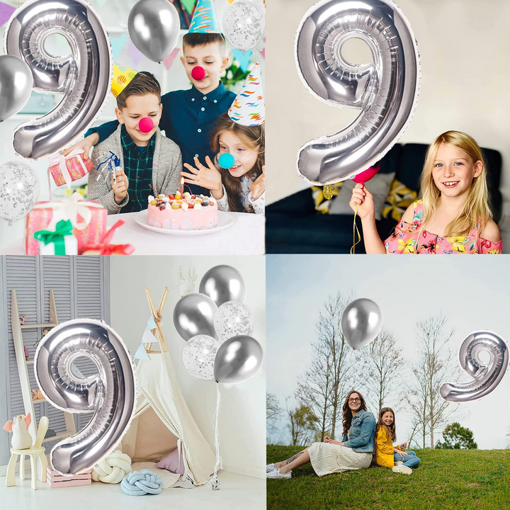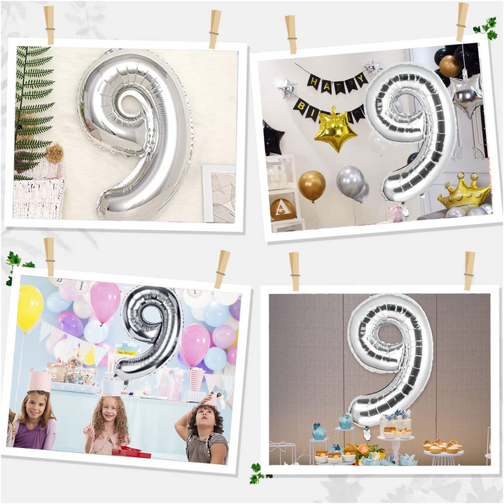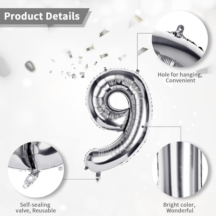Make every celebration unforgettable with this premium Silver Number 9 Foil Balloon. Perfect for birthdays, anniversaries, milestone events, and photo backdrops, it adds a touch of elegance and shine to any occasion.