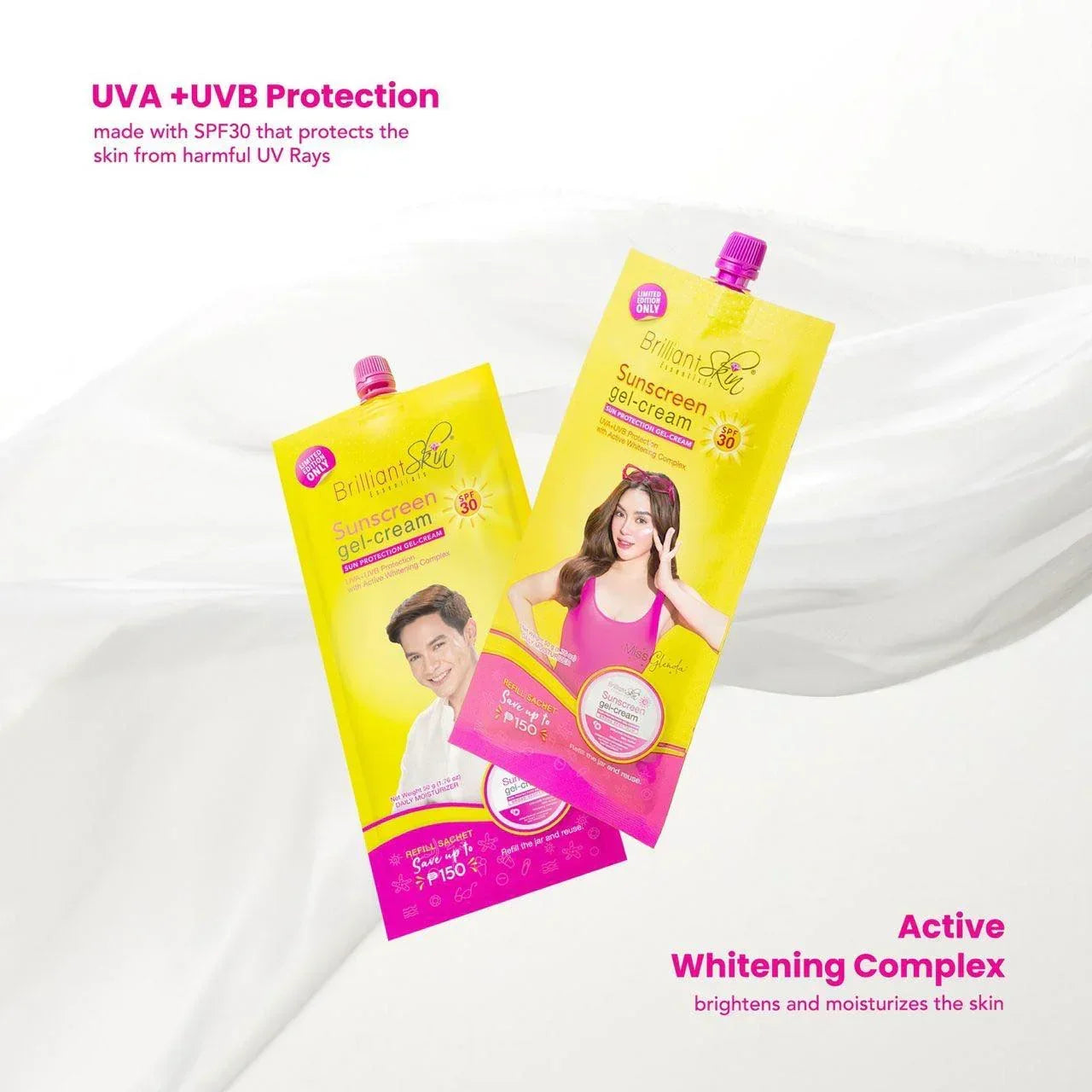 Use Brilliant Skin Sunblock Gel Cream SPF30 during daytime especially when you apply Brilliant Skin Rejuvenating Toner and Rejuvenating cream at night for added protection during the entire exfoliation process. Apply 30 minutes before sun exposure and re-apply as needed.