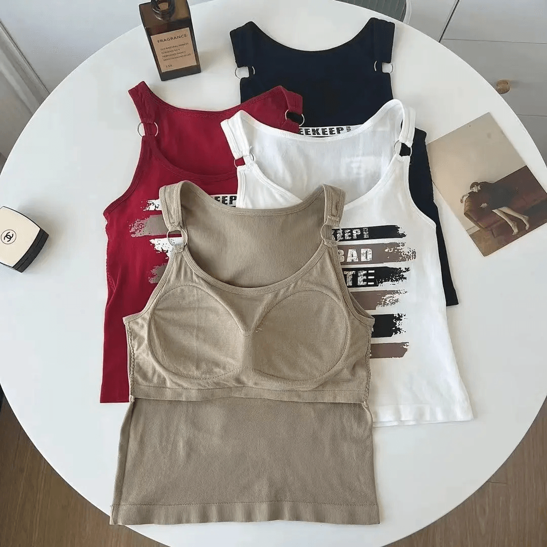 Camisoles With Chest Pad Sleeveless Streetwear Tank Tops - XW8884