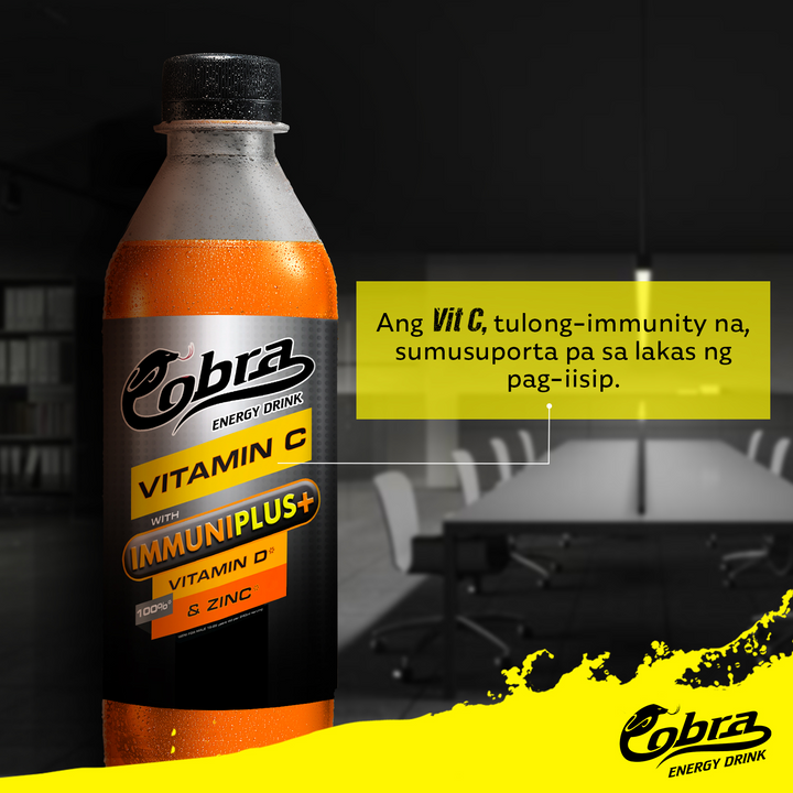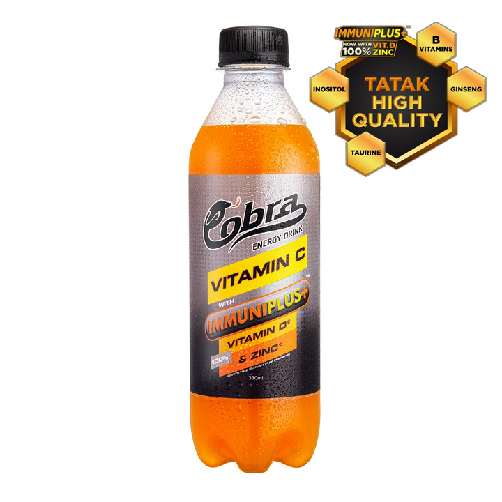 Cobra Plus VITAMIN C with IMMUNIPLUS+  Vitamin C and now has IMMUNIPLUS+, which contains 100% RENI Vitamin D and Zinc to provide extra immunity This delicious energy drink in orange flavor is sure to give energy for those on the go.