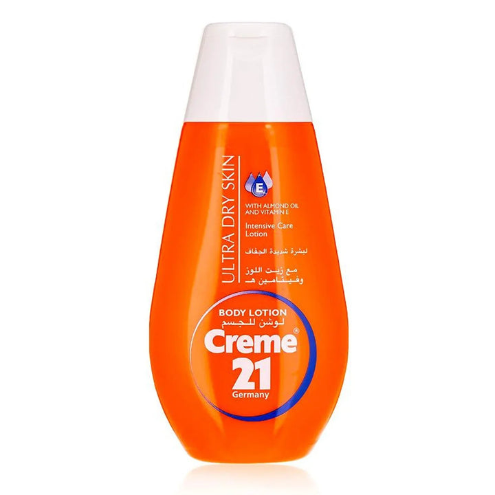 Creme 21 Ultra Dry Skin Lotion is specially formulated to provide intense moisturization for very dry skin. Enriched with the goodness of Almond Oil and Vitamin E, this nourishing lotion deeply penetrates the skin, replenishing lost moisture and restoring its natural softness.