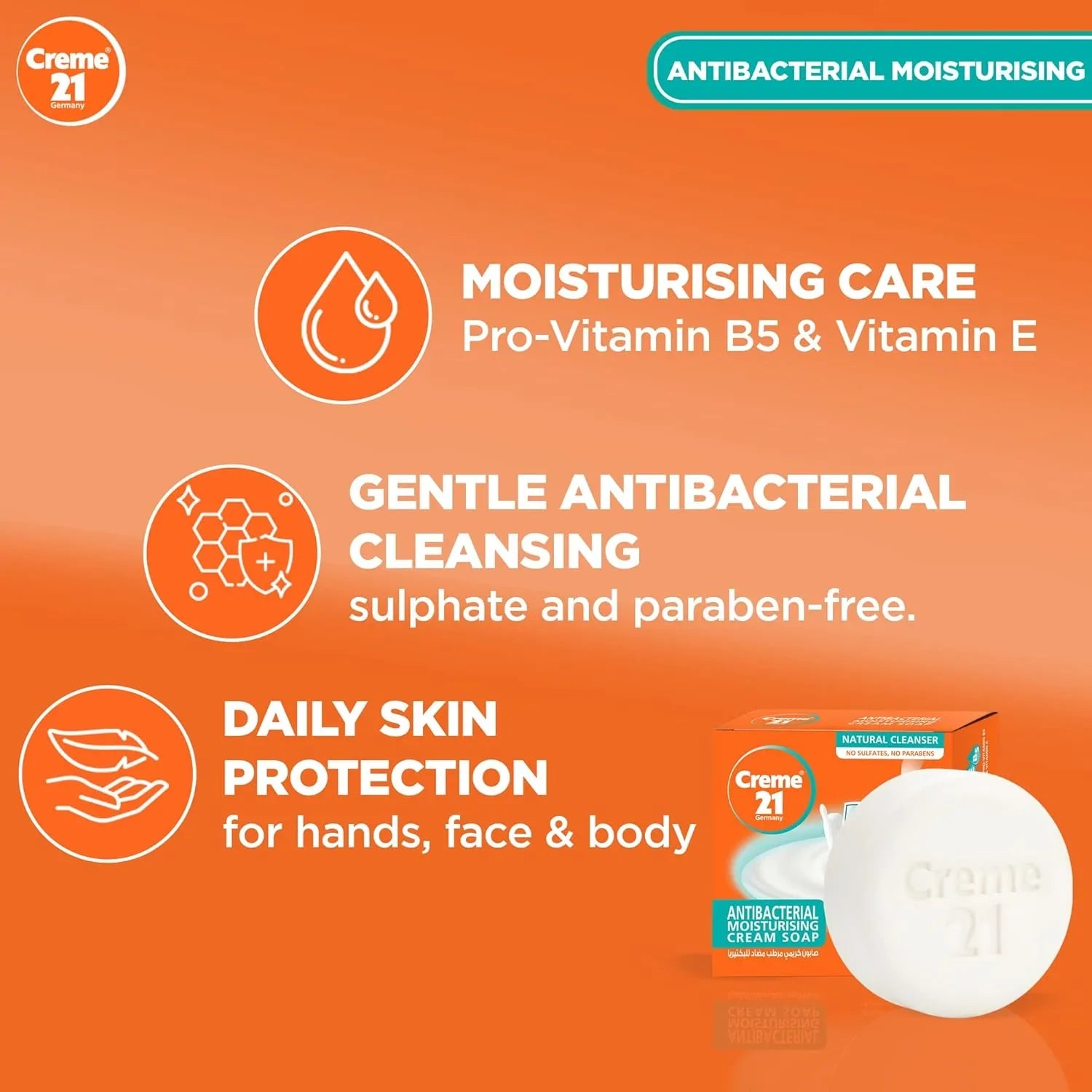 Cleanse, protect, and nourish your skin every day with Creme 21 Anti-Bacterial Moisturizing Cream Soap.