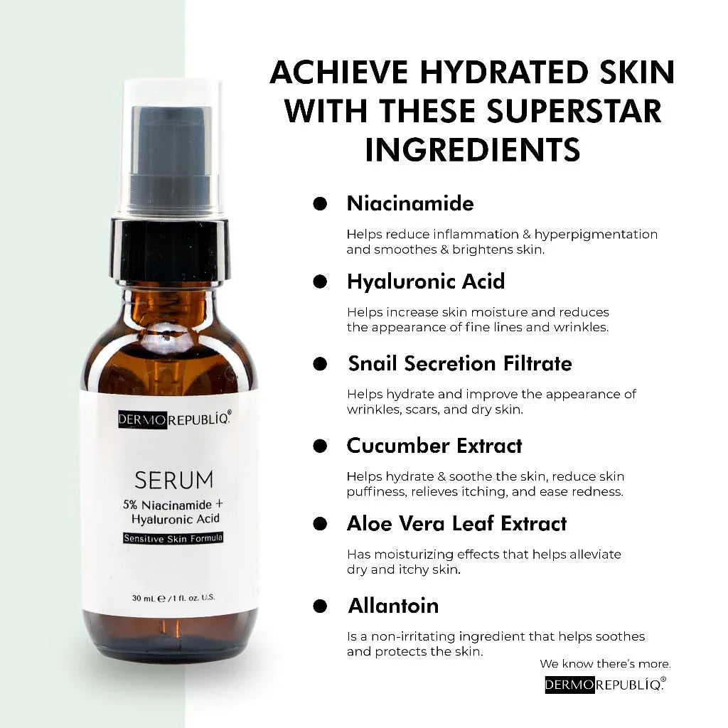 Dermorepubliq 5% Niacinamide + HA Sensitive Skin Formula Serum - 30ml