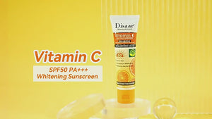 DISAAR VITAMIN C SUNSCREEN SPF50 The refreshing formula has a lightweight,thin and natural texture that can be rapidly absorbed by skin without pore blockage suitable for all types of skin. Enriched with plant extracts and antioxidant. this sun block has unique UV protection element, forms a tight protective network on the skin surface to block UVA/UVB damage,helps inhibit free radicals, increases the skin's defending ability, pampers cells, enhances elasticity and prevents wrinkles & fine lines |