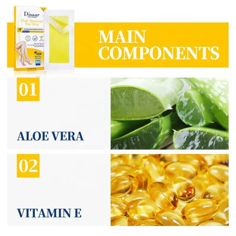 Disaar Hair Removal Wax Strips For Sensitive Skin - 20 Wax Strips
