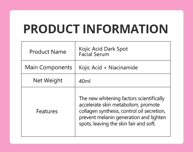 Kojic Acid helps visibly lighten discoloration and uneven patches.