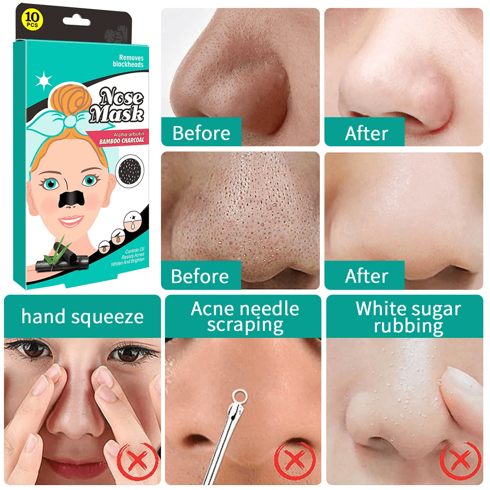 1、Natural Component: The pore strips have safe bamboo charcoal ingredients, which can supplement a variety of nutrients, clean pores and dirt, and promote the absorption of nutrients.