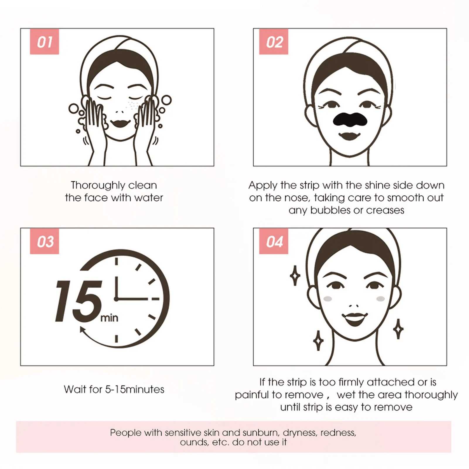 4.Extensive Use: Nose pore strip is fit for most skin types and will not irritate sensitive skin. And it is mild enough. It can be used for the body, cheek, forehead, and chin.