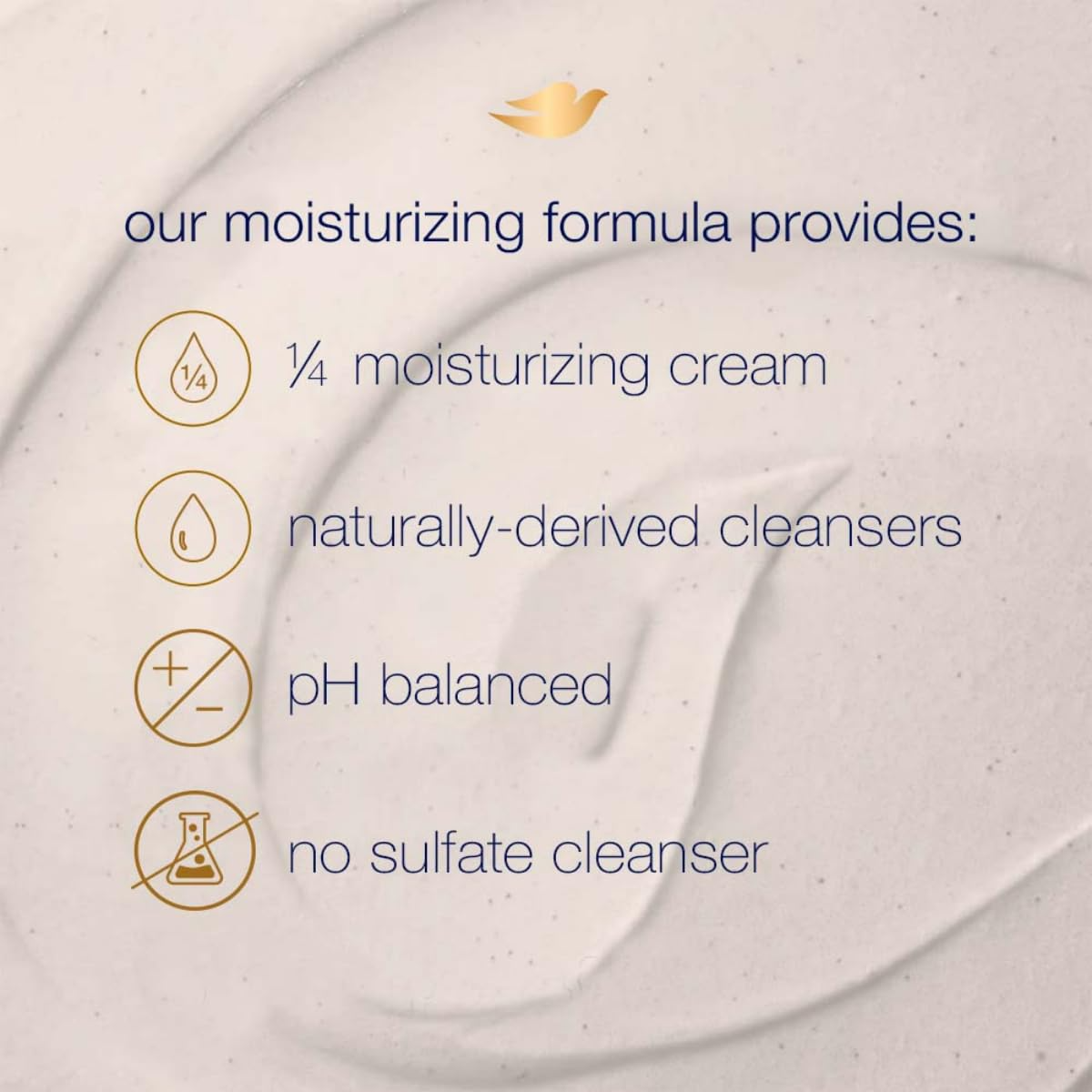 Formulated with sulfate-free, naturally derived cleansers and Dove’s signature ¼ moisturizing cream, it cares for your skin as it exfoliates. The rich, whipped texture creates a luxurious lather that feels indulgent and comforting, turning your bath routine into a spa-like experience. Infused with brown sugar and coconut butter, it helps exfoliate, moisturize, and improve skin texture, leaving your skin glowing and refreshed.