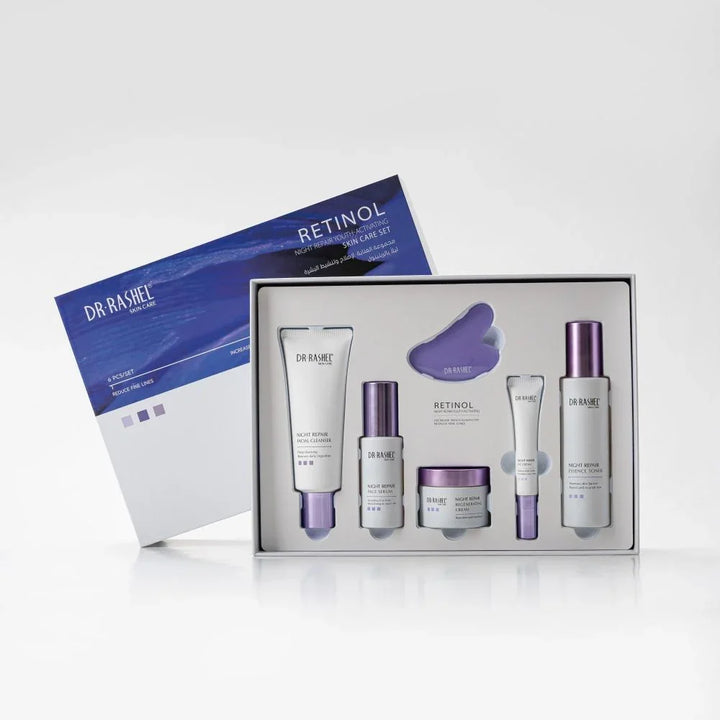 Revitalize your skin overnight with the Dr. Rashel Retinol Night Repair Youth-Activating Skin Care Set, a complete 6-step skincare system designed to target signs of aging while promoting smoother, firmer, and more radiant skin. Powered by Retinol, a gold-standard anti-aging ingredient, this set supports collagen production, accelerates skin renewal, and visibly improves skin tone and texture.