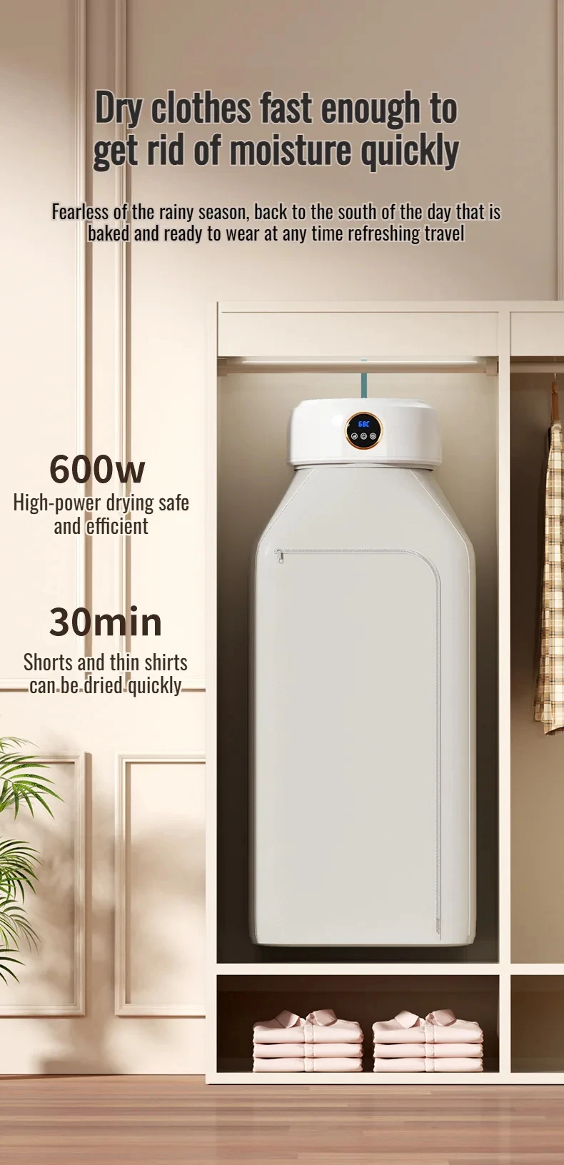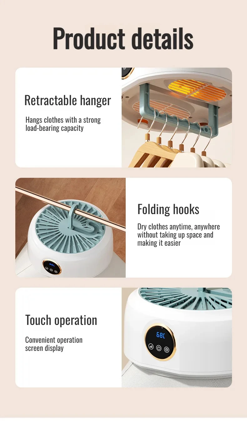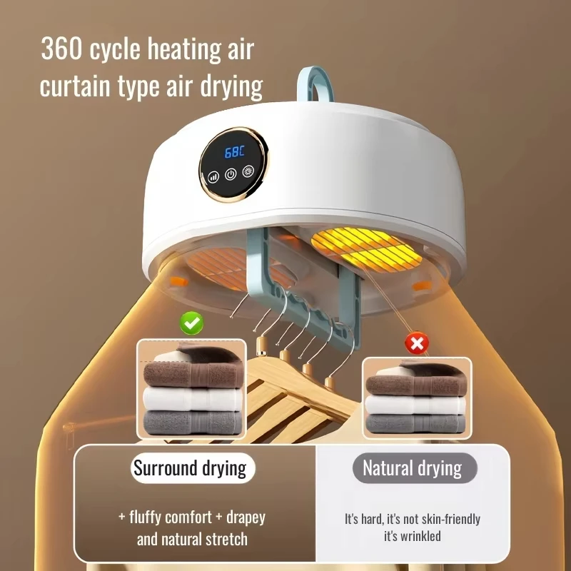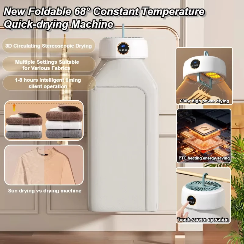 The Convenient Folding Drying Machine is a compact, installation-free solution designed for fast, efficient indoor clothes drying. Featuring 360-degree cycle heating and a wind-curtain air outlet, it delivers even heat distribution to dry garments thoroughly while protecting fabric quality. Its foldable design allows easy storage, making it ideal for small spaces and everyday household use.
