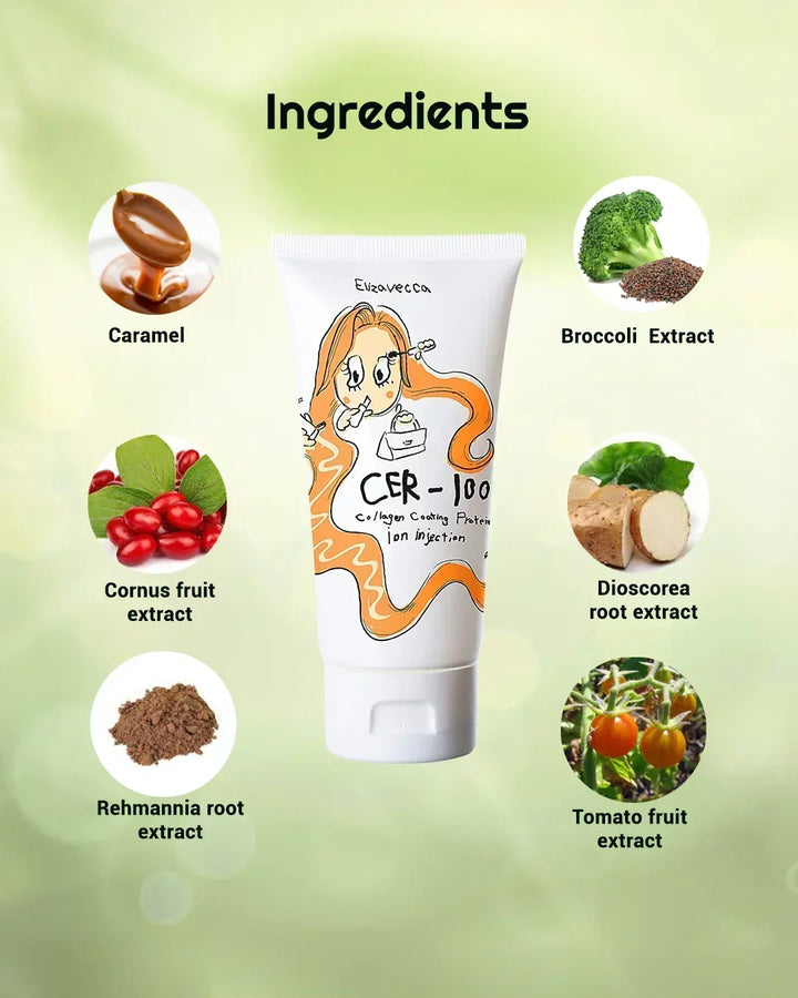 - Repair and Damage Prevention: ELIZAVECCA CER-100 targets and repairs various types of hair damage, including split ends, frizz, and heat or chemical damage. It forms a protective barrier, helping to shield the hair from further damage caused by environmental stressors.