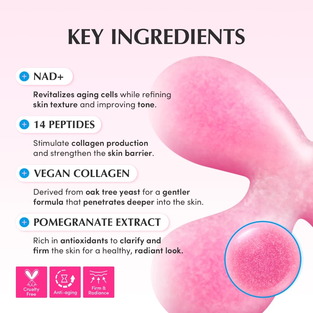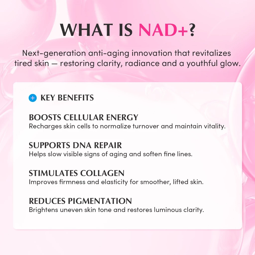 Formulated with NAD+, peptides, and multi-vitamins, it helps support the skin’s natural renewal process while maintaining moisture balance and overall skin comfort.