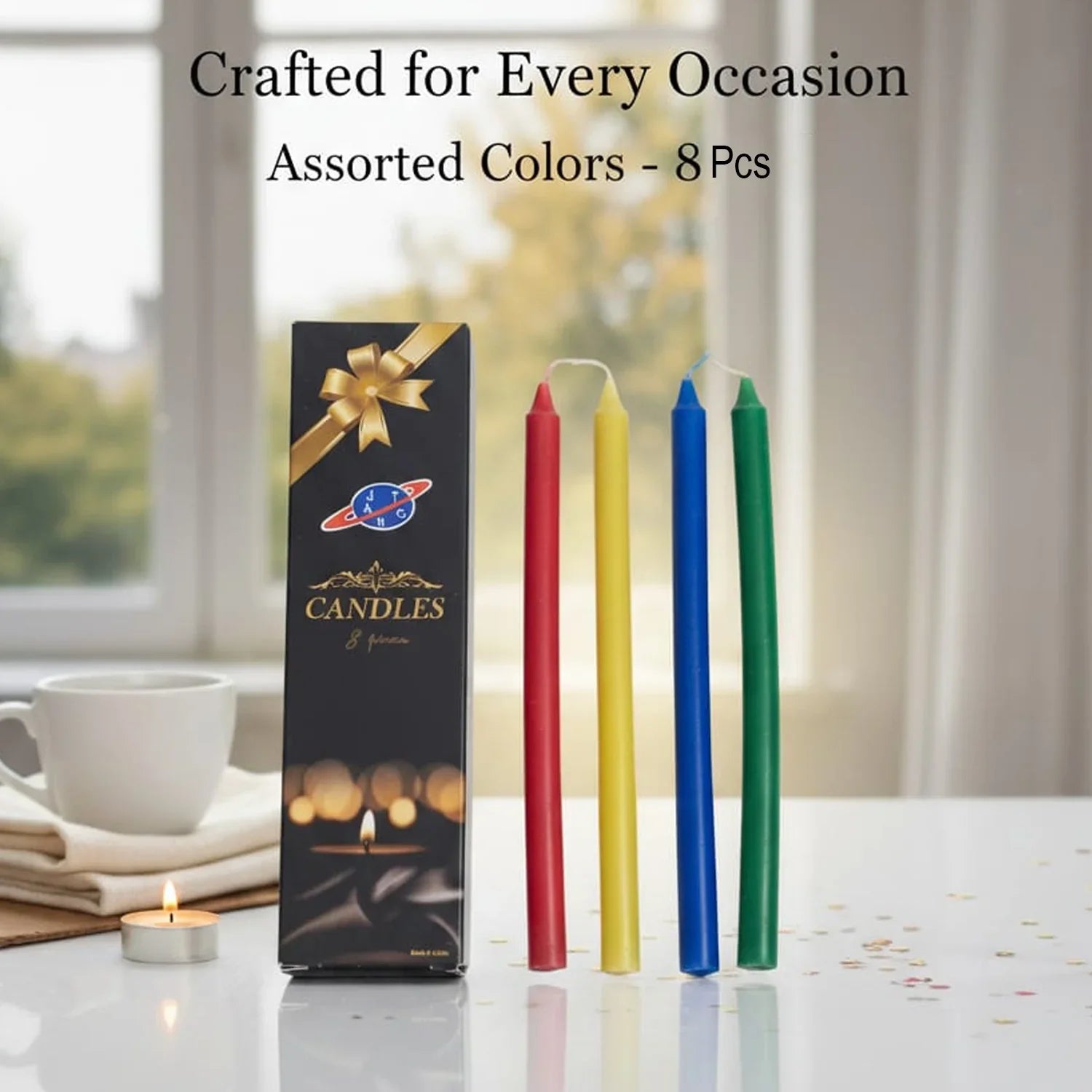 Every Occasion Assorted Colors Candles - 8 Pcs