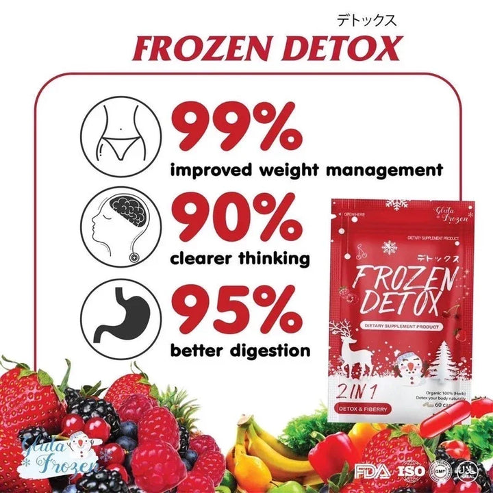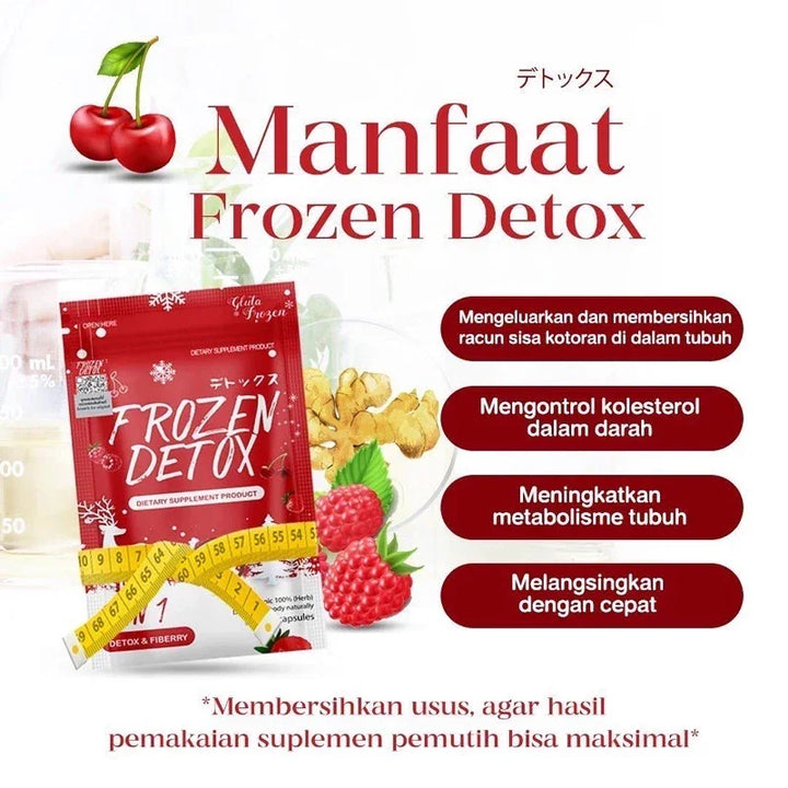 Frozen Detox is the dietary supplement for body detoxification. It contains herbal extracts to balance out the excretory system, reduce belly fats, promote flat stomach, and firm up the body.