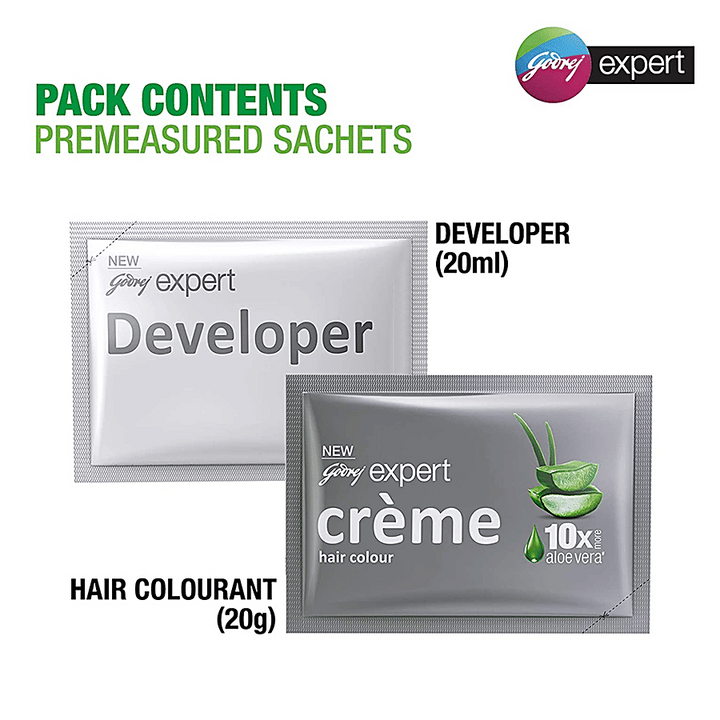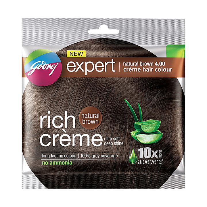Experience rich, long-lasting colour with Godrej Expert Rich Creme Hair Colour. Designed for effortless home application, this ammonia-free formula provides 100% grey coverage while nourishing your hair with Aloe Vera and Milk Protein for a soft, healthy shine.