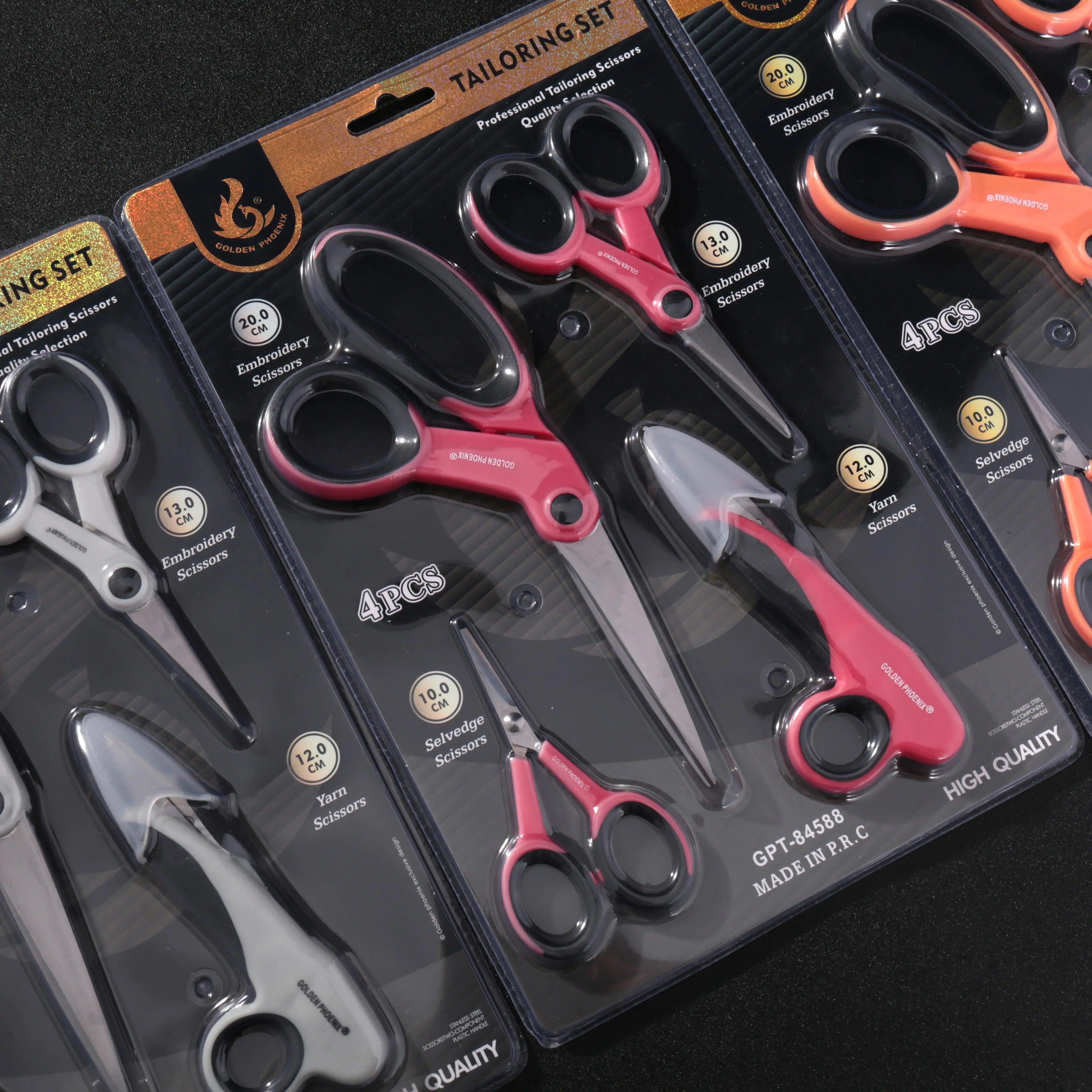 Golden phoenix 4pcs Stainless Steel Household Sewing Fabric Tailor Scissors Set Embroidery Scissors Set
