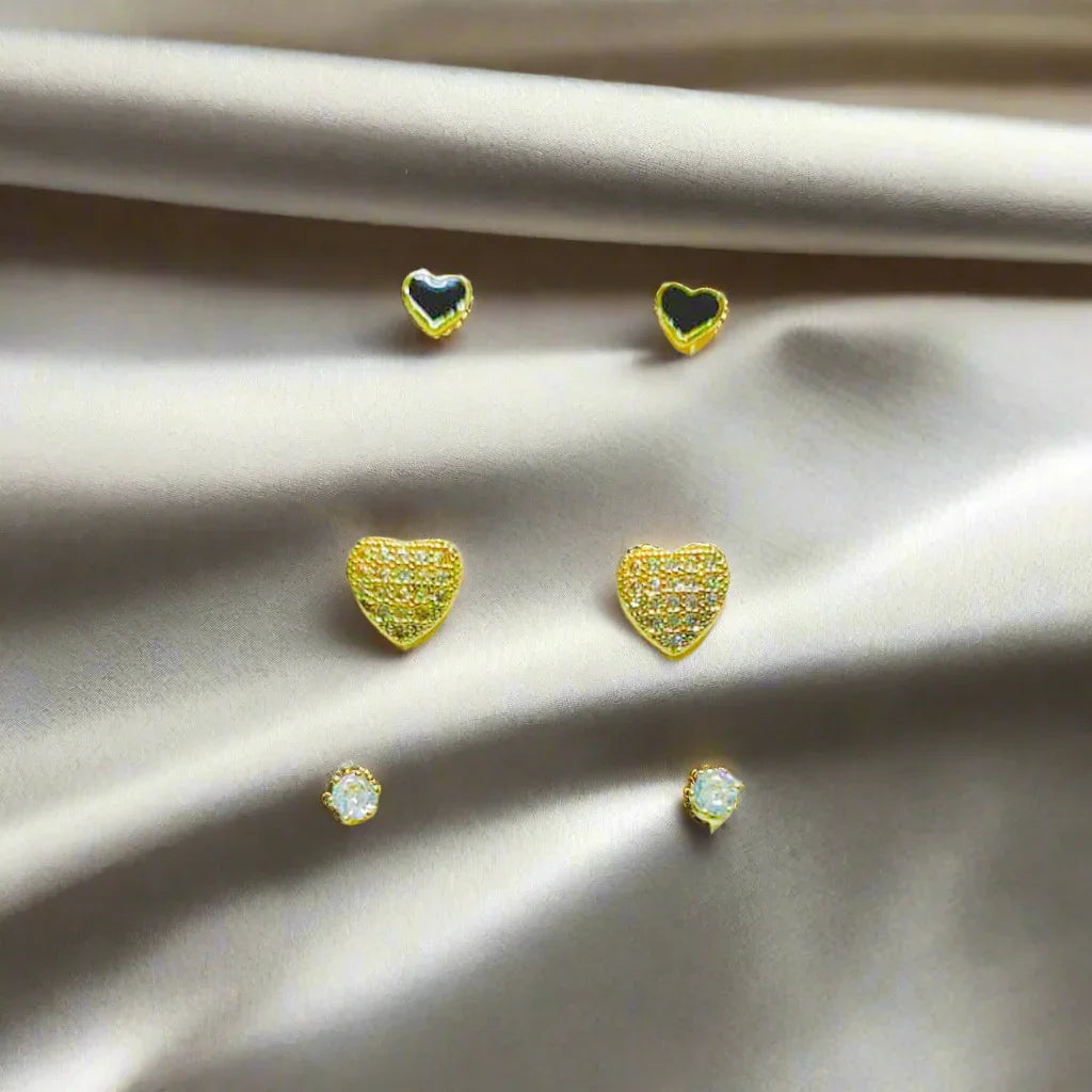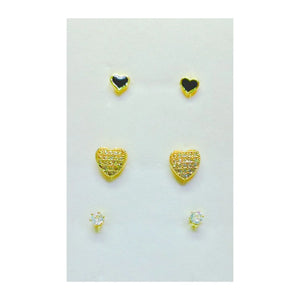 Golden Stainless Steel Korean Style Stud Earrings 3 Pairs - 119