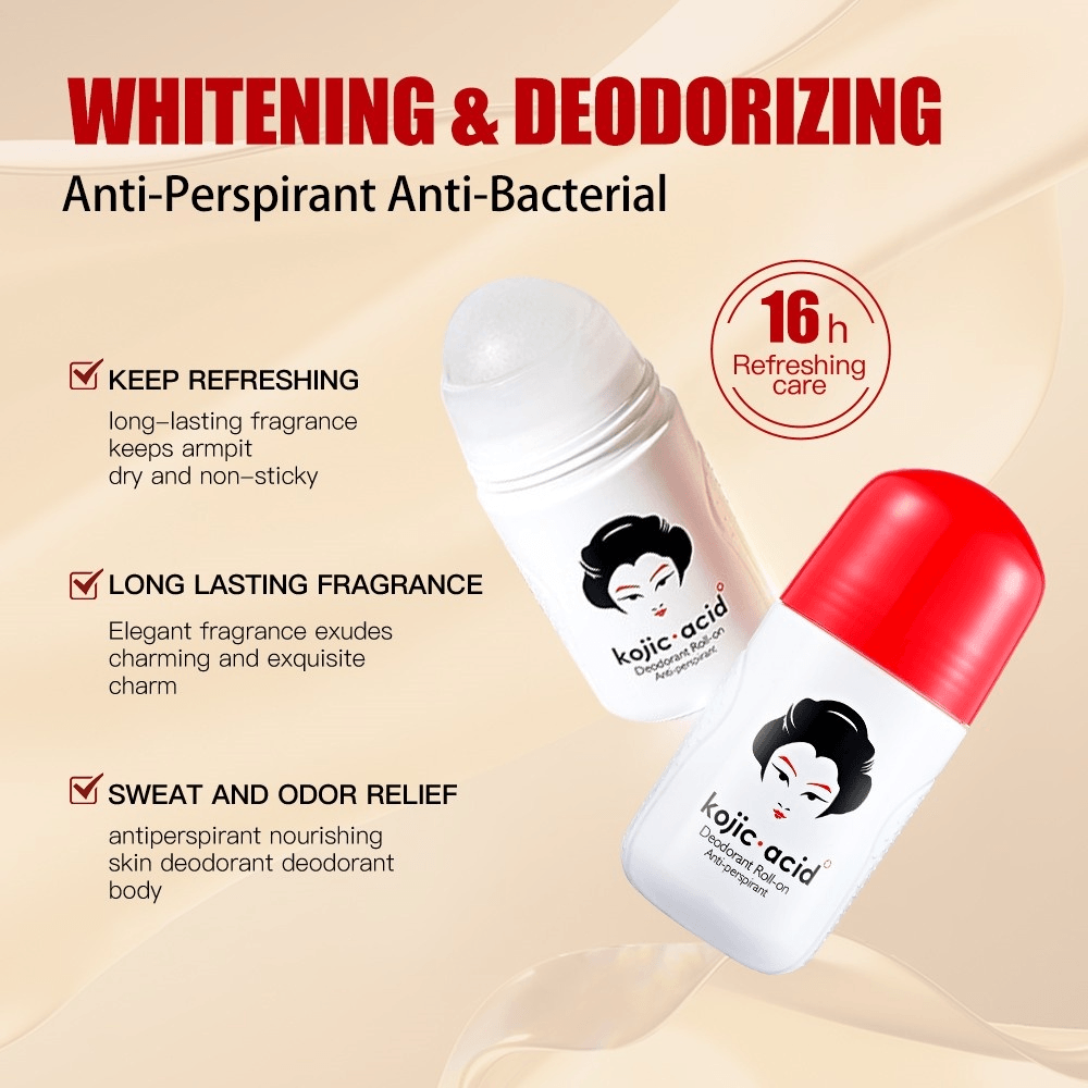 kojic.acid Deodorant Roll-on Anti-perspirant This product is enriched with a variety of whitening extracts to rapidly & effectively fade the dull underarms,whiten skin.effectively remove odor, moisturize and keep the skin fresh & soothed with a pleasant fragrance |