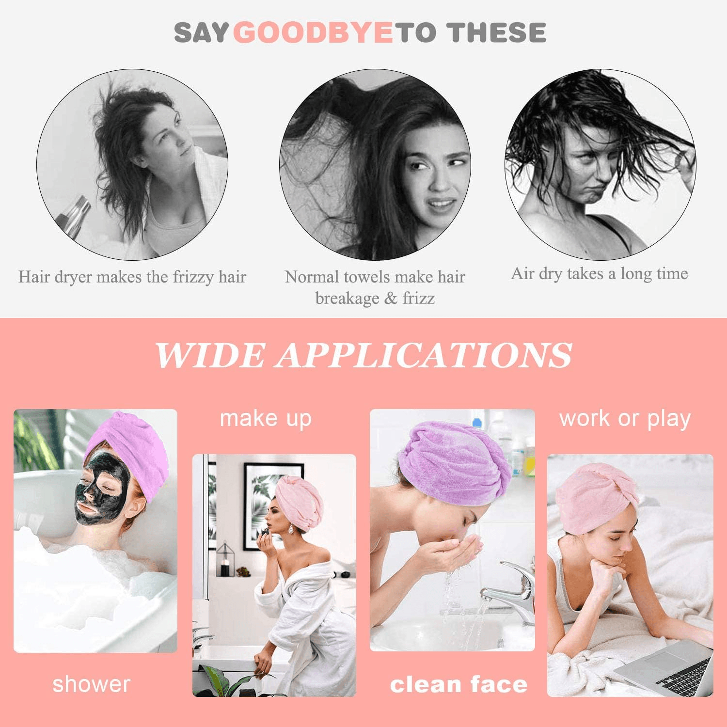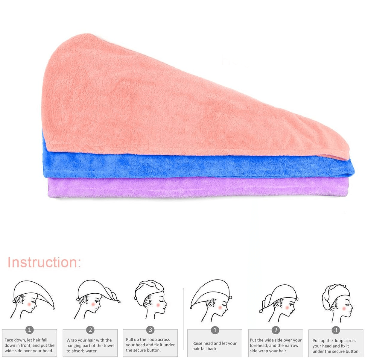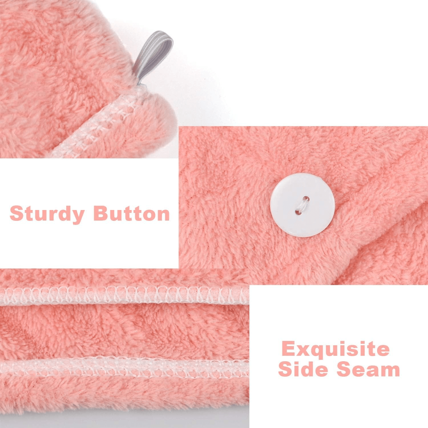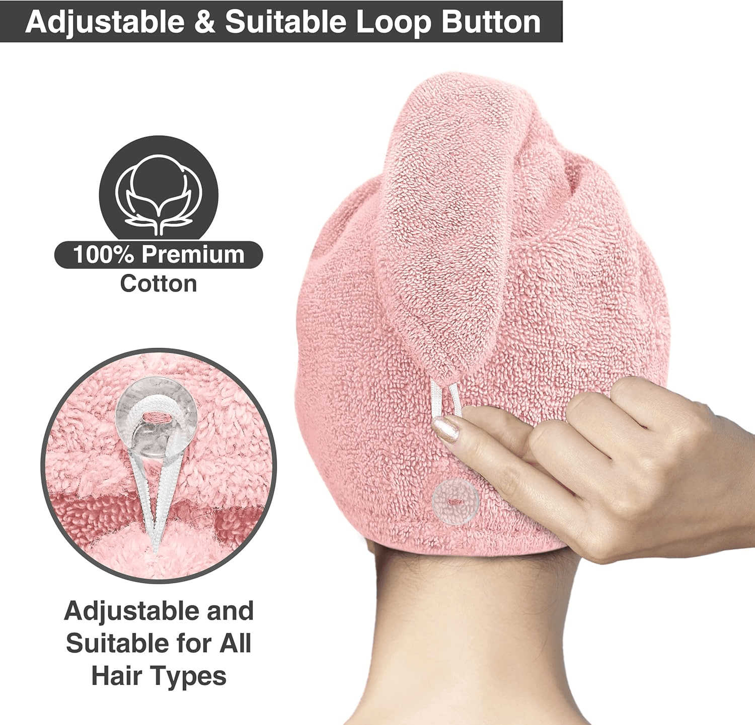 - SECURE HOLD & COMFORTABLE FIT: Our unique big button and elastic loop provide a secure hold after twisting the hair towel wrap. The hair drying towel wrap's lightweight design and terrycloth texture allow you to move freely while it securely wraps your hair, so there's no need for constant readjustments.