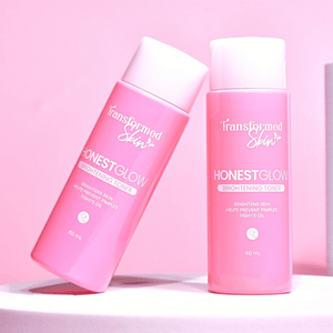 Step 2: Tone with HonestGlow Brightening Toner that helps to loosen and break up the dead skin transforming into bright, glowing, and pinkish skin.