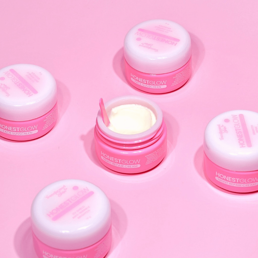 Night: Moisturize with HonestGlow Night Repair Cream that removes dead skin cells and encourages cell renewal to reduce the look of dark spots, fine lines, and signs of aging.