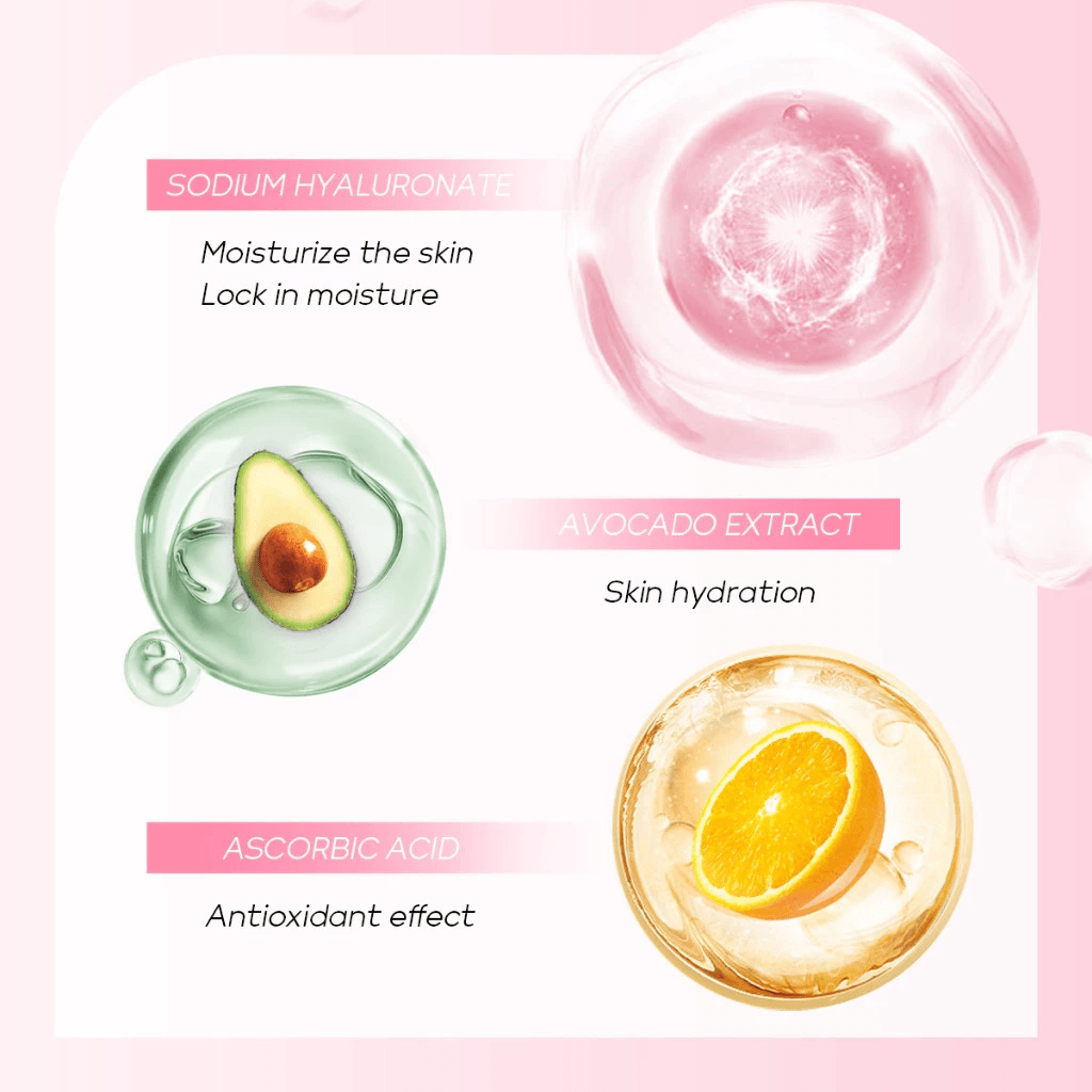 Shea butter, Lactic Acid and other moisturizing ingredients, which can deeply moisturize dry skin, improve skin roughness, make your skin soft and hydrated.