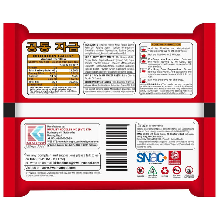 Kab's Jackpot 2x Hot & Spicy Instant Noodles - 60g
