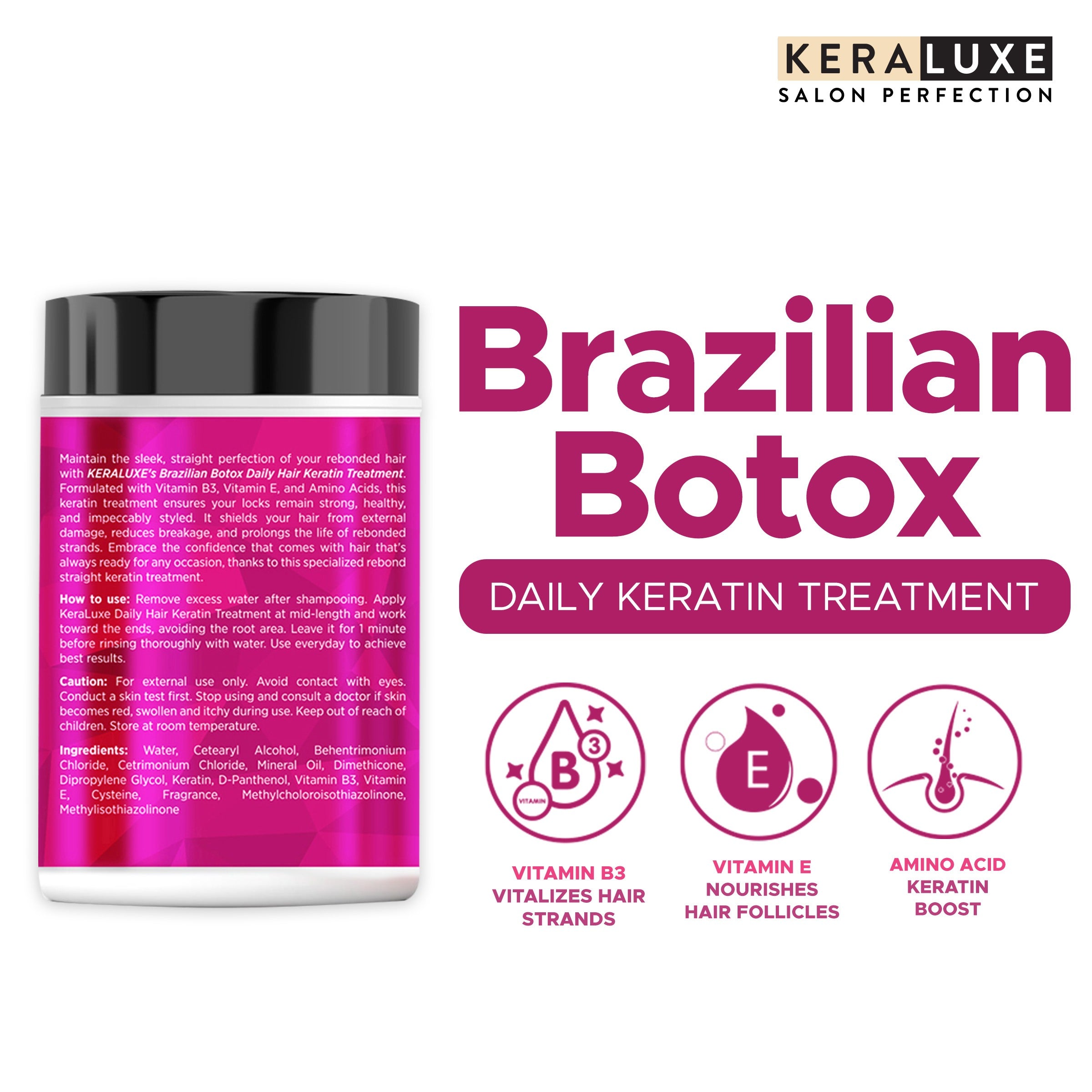 Enjoy long-lasting smoothness, strength, and salon-perfect straight hair with Keraluxe Brazilian Botox Daily Hair Keratin Treatment.