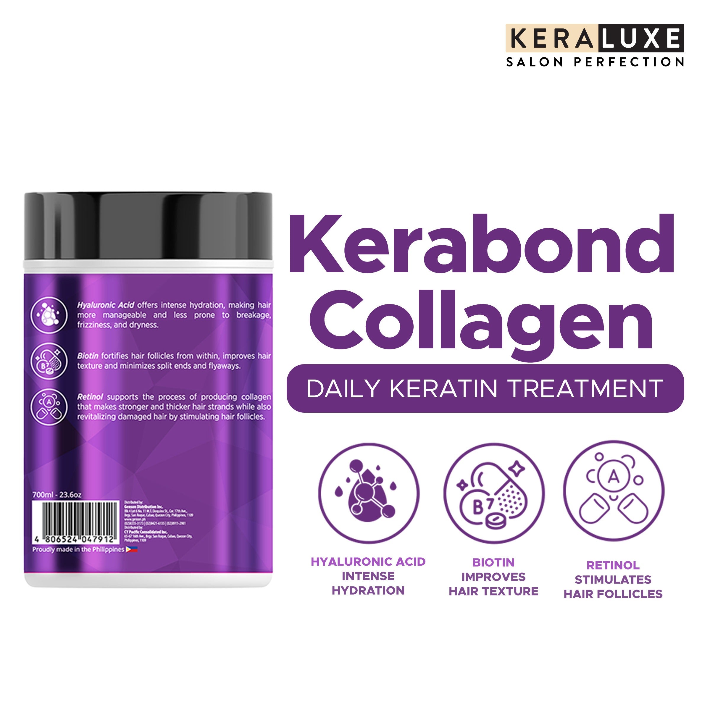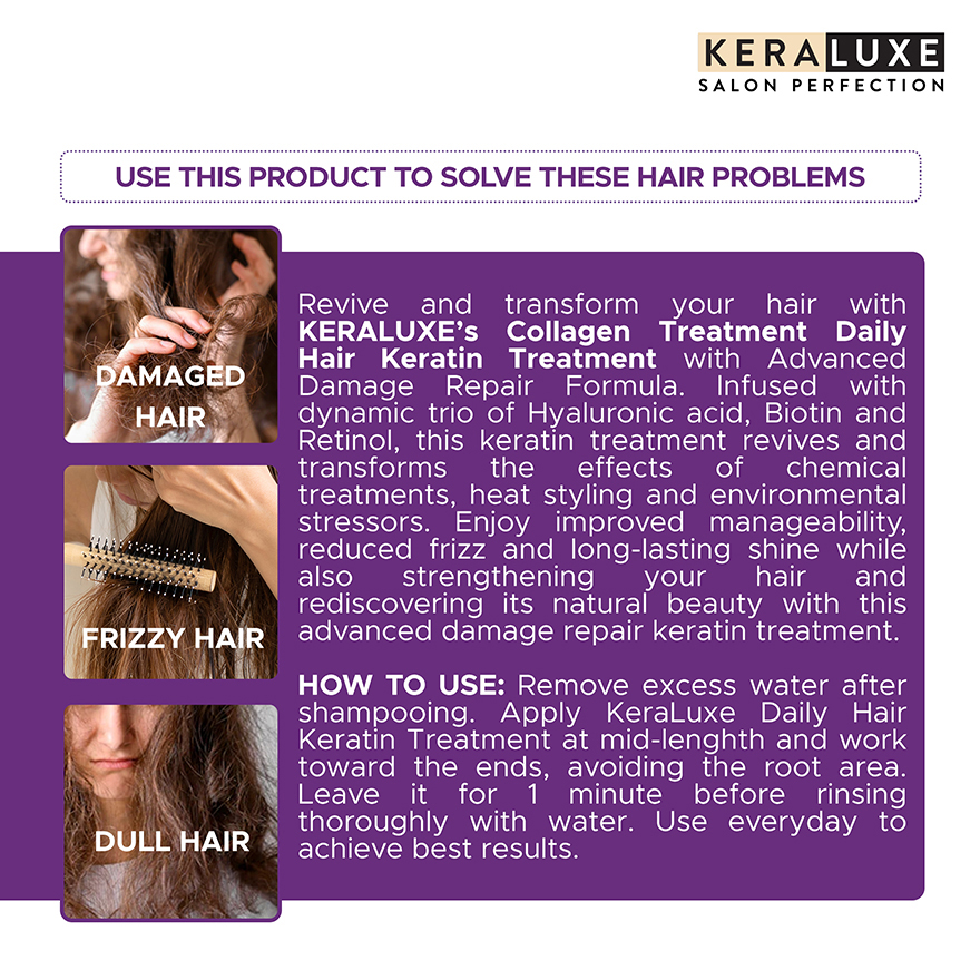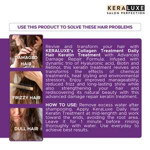 Use daily for best results and enjoy stronger, smoother, and visibly healthier hair with Keraluxe Kerabond Collagen Daily Hair Keratin Treatment.