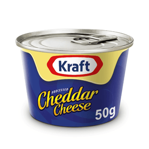 - Kraft cheddar cheese in 50g easy to open can that guarantees long-lasting freshness