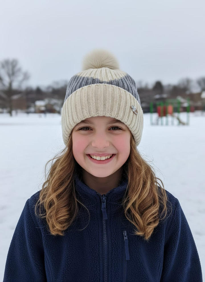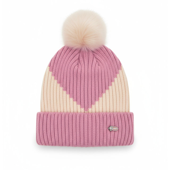Luxury Fur Pom Beanie Striped Knit Winter Hat